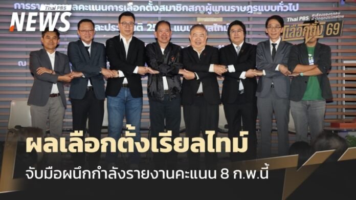 นำทีมพันธมิตรแถลงข่าว ความร่วมมือการรายงานผลคะแนนการเลือกตั้งสมาชิกสภาผู้แทนราษฎรแบบทั่วไป และประชามติ 2569 (แบบเรียลไทม์) ณ คอนเวนชั่น ฮอลล์ ไทยพีบีเอส ถ.วิภาวดีรังสิต กรุงเทพฯ เพื่อประกาศความพร้อมการรายงานผลในวันเลือกตั้ง 8 ก.พ.นี้
