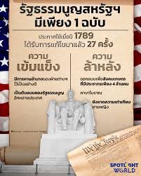 • โครงสร้างหลัก: รัฐธรรมนูญฉบับเดียวมี 7 มาตรา และมีการแก้ไขเพิ่มเติม 27 ครั้งในรอบ 200 กว่าปี