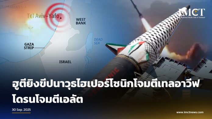 กลุ่มการเมืองและทหารชีอะห์ อันซอรุลลอฮ์ หรือที่รู้จักกันในชื่อฮูตี ซึ่งปกครองพื้นที่ทางตอนเหนือของเยเมน ยิงขีปนาวุธไฮเปอร์โซนิกและโดรนโจมตีเมืองเทลอาวีฟและท่าเรือในเอลัต ประเทศอิสราเอล ตามคำกล่าวของโฆษกกองทัพฮูตี ยะฮยา ซาเรีย เมื่อวันจันทร์ที่ 29 กันยายน
