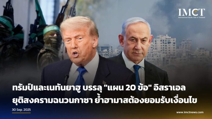 ทรัมป์และเนทันยาฮู บรรลุ “แผน 20 ข้อ” อิสราเอลยุติสงครามฉนวนกาซาย้ำฮามาสต้องยอมรับเงื่อนไข