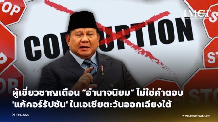 เมื่อสัปดาห์ที่ผ่านมา ที่งานฟอรัมเศรษฐกิจในจาการ์ตา ประธานาธิบดี ปราโบโว ซูเบียนโต (Prabowo Subianto) แห่งอินโดนีเซีย ได้หยิบยกวาทกรรมที่คุ้นเคยในภูมิภาคนี้ขึ้นมาอีกครั้ง โดยระบุว่ามีเพียง “รัฐที่เข้มแข็ง” เท่านั้นที่จะสามารถถอนรากถอนโคนการทุจริตได้ พร้อมทั้งวางกรอบให้อำนาจบริหารที่เด็ดขาดเป็นเครื่องมือที่ใช้งานได้จริงในการต่อต้านการรับสินบน