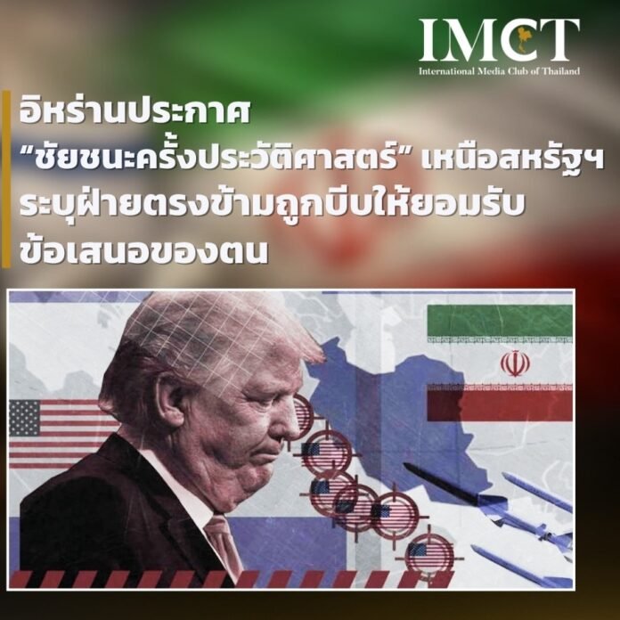 อิหร่านประกาศชัยชนะ “ครั้งประวัติศาสตร์และเด็ดขาด” เหนือสหรัฐฯ และอิสราเอล หลังสงครามยาวนาน 40 วันระบุว่าวอชิงตันจำต้องยอมรับข้อเสนอ 10 ข้อของอิหร่าน รวมถึงการหยุดยิงถาวร การยกเลิกมาตรการคว่ำบาตรทั้งหมด และการถอนกำลังทหารสหรัฐฯ ออกจากภูมิภาค