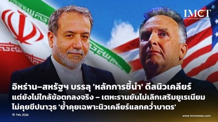 สำนักข่าว Reuters รายงานว่า อิหร่านประเมินว่า การเจรจานิวเคลียร์กับสหรัฐฯ รอบล่าสุดที่นครเจนีวา “คืบหน้าอย่างมีนัยสำคัญ” หลังสองฝ่ายสามารถตกลงร่วมกันในกรอบ “หลักการชี้นำ” สำหรับเดินหน้าจัดทำร่างข้อตกลง แม้เตือนว่ายังไม่ถึงขั้นใกล้บรรลุดีลเต็มรูปแบบ