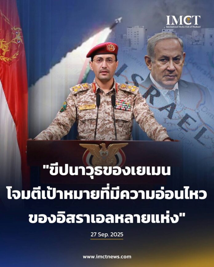 เยเมนโจมตีเป้าหมายอ่อนไหวในอิสราเอลด้วยขีปนาวุธ “ปาเลสไตน์ 2” ความเร็วเหนือเสียง ตอบโต้การรุกรานกรุงซานา
