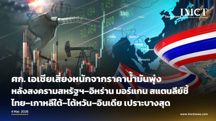 SCMP รายงานว่า มอร์แกน สแตนลีย์ (Morgan Stanley) ระบุว่าประเทศในเอเชียพึ่งพาการนำเข้าน้ำมันและก๊าซอย่างหนัก และอาจได้รับผลกระทบทางเศรษฐกิจอย่างรุนแรงหลังจากสหรัฐอเมริกาและอิสราเอลเปิดฉากโจมตีอิหร่าน ธนาคารเพื่อการลงทุนที่มีสำนักงานใหญ่ในนิวยอร์กแห่งนี้ระบุในรายงานวิจัยเมื่อวันอาทิตย์ที่ 1มีนาคมว่า ภูมิภาคที่เน้นการผลิตและพึ่งพาการส่งออกอย่างเอเชียมี “ความอ่อนไหว” ต่อความผันผวนของราคาน้ำมันมากกว่ายุโรปหรือสหรัฐฯ