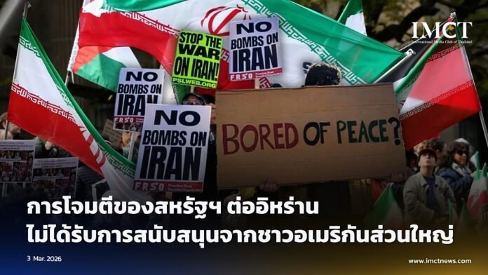 ผู้ตอบแบบสำรวจส่วนใหญ่( Poll) เชื่อว่า ประธานาธิบดีโดนัลด์ ทรัมป์ มีแนวโน้มใช้กำลังทหารมากเกินไป การโจมตีทางทหารร่วมกันของสหรัฐฯ และอิสราเอลต่ออิหร่านไม่ได้รับการสนับสนุนจากชาวอเมริกันส่วนใหญ่ ตามผลสำรวจของ Reuters/Ipsos ที่เผยแพร่เมื่อวันจันทร์ที่ 2 ทีนาคม 2026