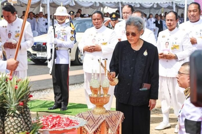 วันนี้ ( 23 ก.พ.)เมื่อเวลา 13.27 น. สมเด็จพระกนิษฐาธิราชเจ้า กรมสมเด็จพระเทพรัตนราชสุดา ฯ สยามบรมราชกุมารี เสด็จพระราชดำเนินไปทรงประกอบพิธีปักหมุดวางผังก่อสร้างพระเมรุมาศในการพระราชพิธีถวายพระเพลิงพระบรมศพ สมเด็จพระนางเจ้าสิริกิติ์ พระบรมราชินีนาถ พระบรมราชชนนีพันปีหลวง ณ ท้องสนามหลวง กรุงเทพมหานคร
