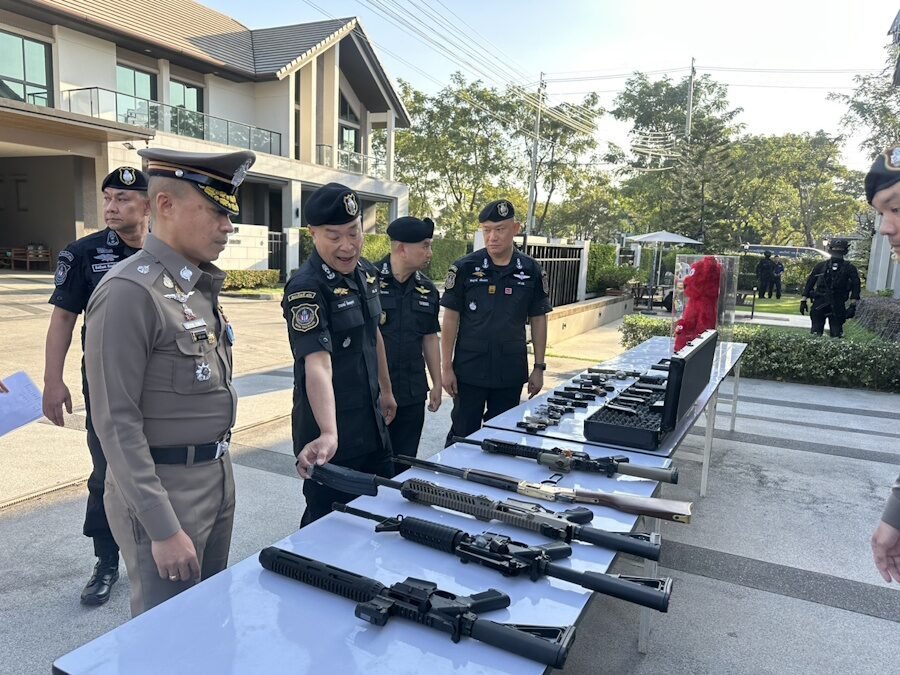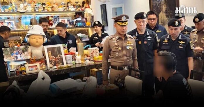 ทั้งนี้ รายงานแจ้งว่า 1 ในจุดค้นแห่งหนึ่ง คือบ้านหรูทรงยุโรป 2 ชั้น ที่หมู่บ้านหรูแห่งหนึ่ง ถนนบางแวก แขวงบางเชือกหนัง เขตตลิ่งชัน กทม. จุดดังกล่าวสามารถจับกุมผู้ต้องหาตามหมายจับได้ 2 ราย เป็นสามีชาวไทยและภรรยาชาวลาว พร้อมของกลางเป็นรถยนต์หรู 2 คัน รถจักรยานยนต์ 1 คัน เงินสดมูลค่า 1 ล้านบาท อาวุธปืนสั้น 11 กระบอก พร้อมเครื่องกระสุนจำนวนหนึ่ง อาวุธปืนยาว 5 กระบอก และตุ๊กตาหรูหลายตัว