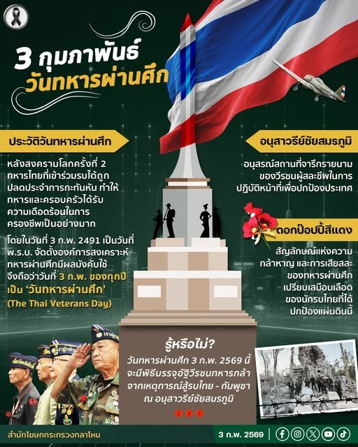 วันทหารผ่านศึก ตรงกับวันที่ 3 กุมภาพันธ์ของทุกปี