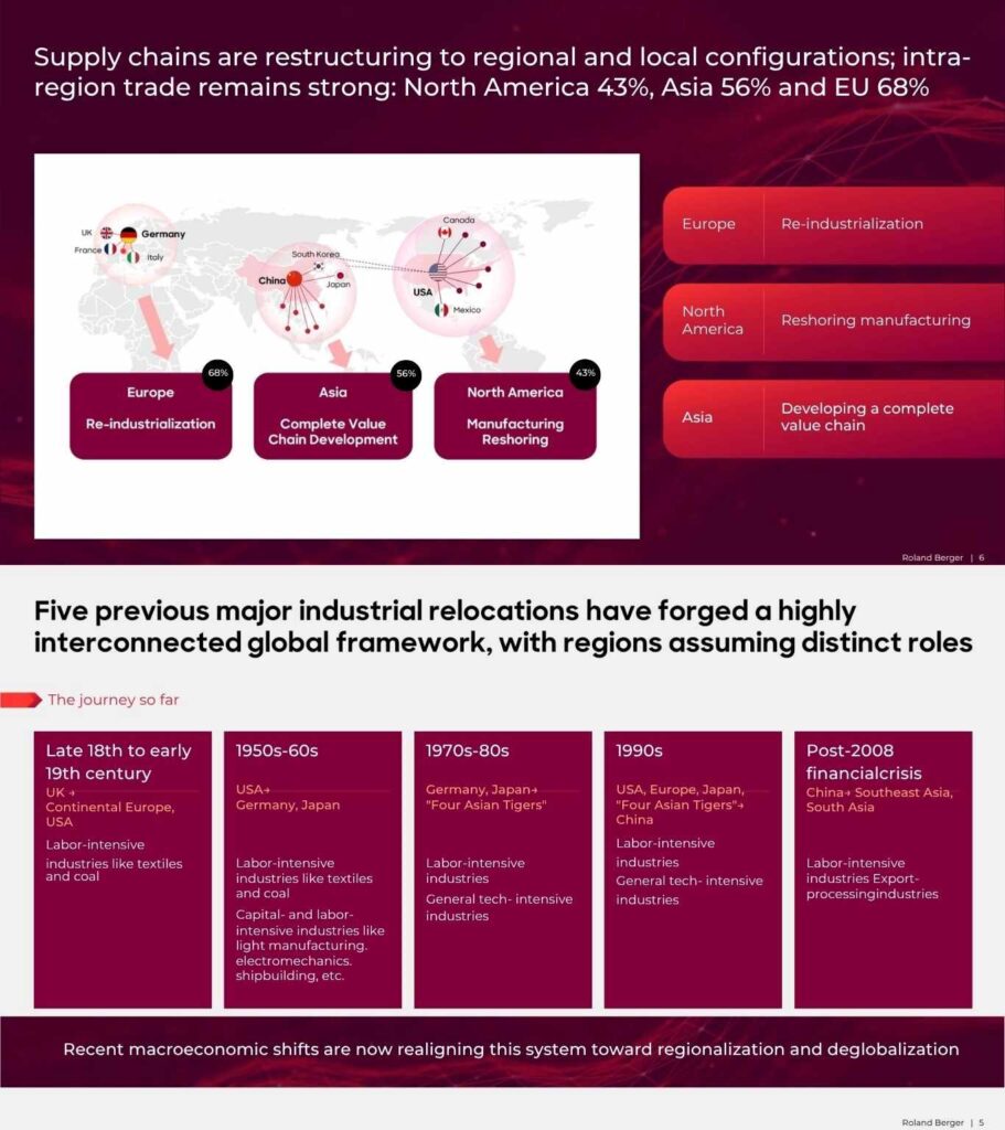 ในการแถลงข่าวหัวข้อ “Global Supply Chain in Its Asian Era” ที่กรุงกัวลาลัมเปอร์เมื่อเร็ว ๆ นี้ Roland Berger เปิดตัวรายงาน “Asia Supply Chain Reconfiguration” ซึ่งชี้ว่าศูนย์กลางห่วงโซ่ อุปทานโลกกำลังเลื่อนจากตะวันตกสู่เอเชียอย่างถาวร โดยมีอินโดนีเซีย มาเลเซีย และไทยเป็นกำลัง หลักของการเปลี่ยนผ่าน