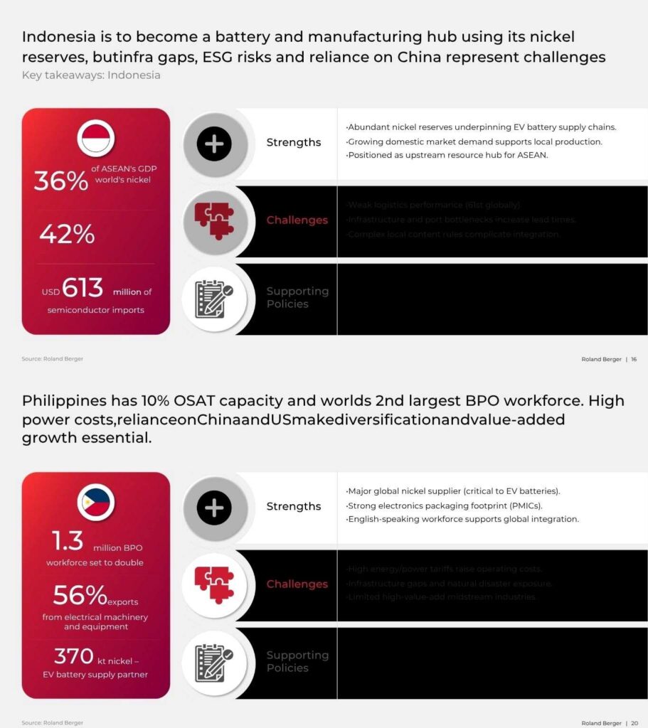 เมื่อพิจารณาทิศทางการลงทุนในภูมิภาค อินโดนีเซียถูกชี้ว่าเป็น “ดาวเด่น” ของเอเชียตะวันออกเฉียงใต้ ด้วยการครอง 42% ของทรัพยากรนิกเกิลโลก ซึ่งเป็นวัตถุดิบสำคัญของแบตเตอรี่รถยนต์ไฟฟ้า (EV) รัฐบาลอินโดนีเซียกำลังผลักดันกลยุทธ์แบตเตอรี่ระดับชาติ (National Battery Strategy) เพื่อสร้างห่วงโซ่อุปทานแบตเตอรี่ EV แบบครบวงจรภายในประเทศ ตั้งแต่การขุดแร่จนถึงการผลิตแบตเตอรี่สำเร็จรูป