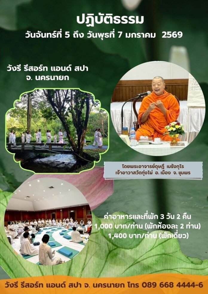 เรียนเชิญปฏิบัติธรรม พักผ่อนดูแลรักษาใจ
