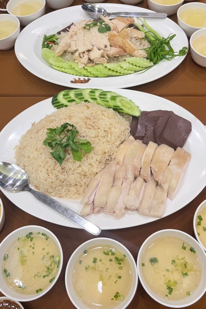 เลยสับไก่เนื้อน่องฉ่ำๆ โปะไปให้มิดข้าว แถมตับให้อีกสองชิ้น