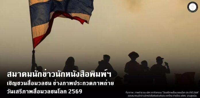 สมาคมนักข่าวนักหนังสือพิมพ์แห่งประเทศไทย ขอเชิญเพื่อนร่วมวิชาชีพสื่อมวลชน ส่งผลงานเข้าร่วมประกวดเนื่องใน “วันเสรีภาพสื่อมวลชนโลก” ประจำปี 2569 ชิงเงินรางวัลสูงสุด 10,000 บาท พร้อมใบประกาศเกียรติคุณ!