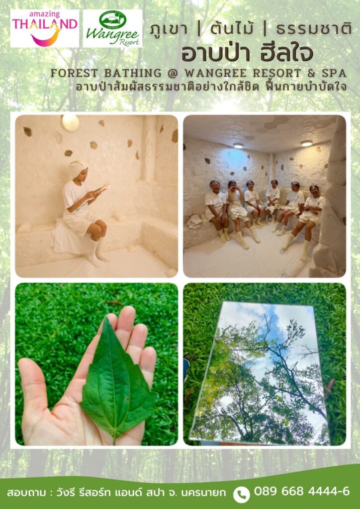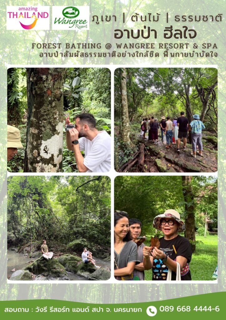 “อาบป่า” หรือ Forest Bathing คือการใช้เวลาในธรรมชาติอย่างมีสติเพื่อเชื่อมโยงกับสิ่งแวดล้อมผ่านประสาทสัมผัสทั้งห้า เป็นการผ่อนคลายทั้งร่างกายและจิตใจจากความเครียด และส่งเสริมสุขภาพที่ดีขึ้น