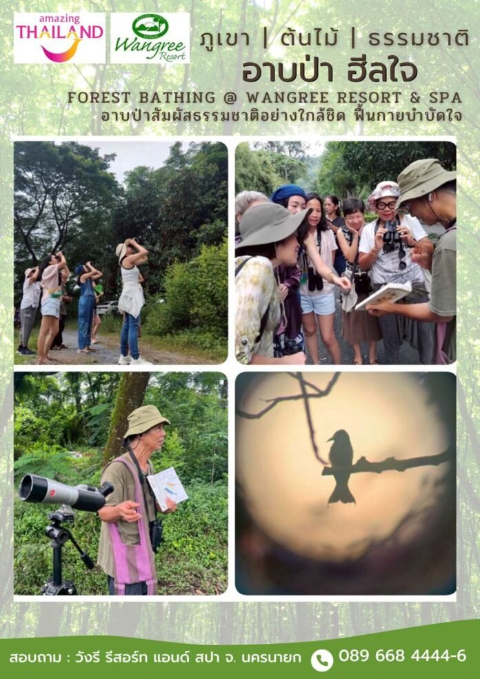 สำหรับกิจกรรมอาบป่าของวังรี เรามีความแตกต่างจากการอาบป่าโดยทั่วไป เราและกระบวนกร “พี่ปู” ผู้มีประสบการณ์เรื่องการอาบป่าและกิจกรรมดูนก ได้พูดคุยกันจนตกผลึกและจัดสรรกิจกรรมให้ผู้เข้าร่วมกิจกรรมได้พักผ่อนและใกล้ชิดธรรมชาติ