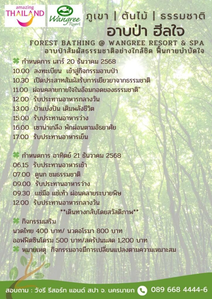 อาบป่าธันวาคม เสาร์ที่ 20 ถึง อาทิตย์ที่ 21 ธันวาคม เดือนส่งท้ายปี ต้อนรับปีใหม่ 2569 ลงทะเบียนได้เลยค่ะ