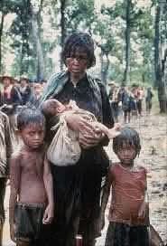 .. ภาพที่ท่านๆเห็นอยู่นี้คนในภาพเธอมีชื่อว่า นาง เทือง อูน (Thuong Oun) เธอเป็นหญิงชาวนา เป็นชาวบ้านชาวกัมพูชา หรือชาวเขมรคนหนึ่ง เธอได้หอบอุ้มลูกที่ยังเป็นเพียงเด็กตัวน้อยๆ หนีตายพร้อมทั้งมือก็จูงลูกชาย พร้อมด้วยลูกสาวอีกคน หลบหนีการล่าสังหารผู้คนอย่างบ้าคลั่งของพวกเขมรแดง หัวรุนแรง เดินทางลัดเลาะด้วยเท้าเปล่าข้ามชายป่าฝั่งเขมรเข้ามาสู่ยังดินแดนประเทศไทย.
