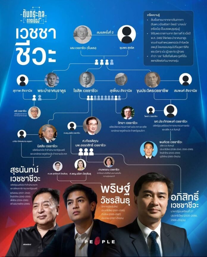 หากจะเอ่ยถึงนามสกุลที่ทรงอิทธิพลและมีบทบาทเคียงคู่กับสังคมไทยมาอย่างยาวนาน ชื่อของ ‘เวชชาชีวะ’ ย่อมถูกจัดอยู่ในลำดับต้น ๆ ไม่เพียงแต่ในฐานะตระกูลที่ผลิตนายกรัฐมนตรี แต่ยังเป็นสายธารแห่งความรู้ที่หยั่งรากลึกลงในวงการการแพทย์ การทูต วรรณกรรม และการเมืองท้องถิ่น