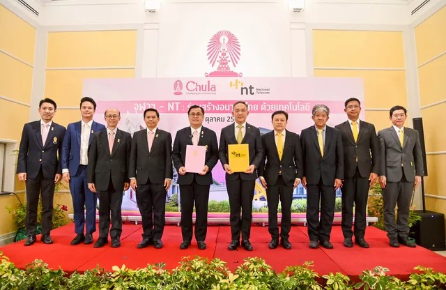 วันที่ 10 ตุลาคม 2568 พันเอก สรรพชัยย์ หุวะนันทน์ กรรมการผู้จัดการใหญ่ บริษัท โทรคมนาคมแห่งชาติ จำกัด (มหาชน) หรือ NT และ ศ.ดร.วิเลิศ ภูริวัชร อธิการบดีจุฬาลงกรณ์มหาวิทยาลัย ร่วมลงนามการจัดทำข้อตกลงความร่วมมือร่วมสร้างอนาคตไทยด้วยเทคโนโลยี โดยมีวัตถุประสงค์เพื่อเป็นการส่งเสริมการเรียนรู้และพัฒนาศักยภาพของนิสิตจุฬาลงกรณ์มหาวิทยาลัยผ่านโครงการสหกิจศึกษา นิสิตจะมาปฏิบัติงานจริงในโครงการแผนงานต่างๆ ในองค์กรที่มีทั้งในปัจจุบันและที่กำลังจะเกิดขึ้นเพื่อเติมเต็มองค์ความรู้ของนิสิตก่อนจบการศึกษา