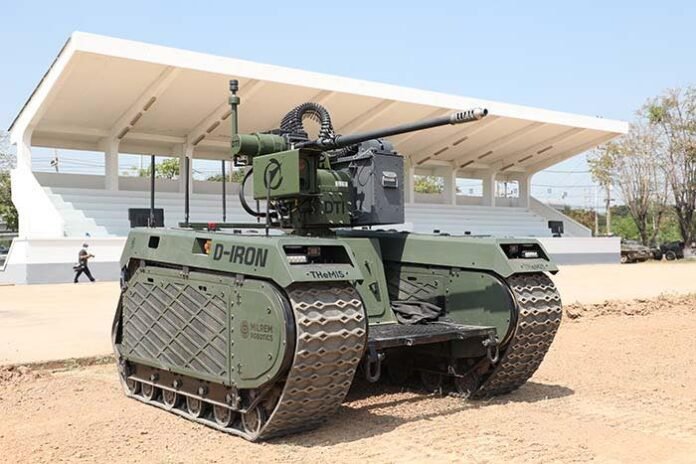 กลายเป็นเขี้ยวเล็บใหม่ที่น่าสะพรึงกลัวสำหรับศัตรู เมื่อกองทัพไทยเปิดตัวปฏิบัติติการจริงของ ‘D-Iron RCV’ (Robotic Combat Vehicle) ยานยนต์รบไร้คนขับทางยุทธวิธีที่พัฒนาโดยสถาบันเทคโนโลยีป้องกันประเทศ (DTI) ร่วมกับพันธมิตรระดับโลก ชูจุดเด่น “เสียงเงียบ พลังทำลายล้างสูง” ถูกส่งเข้าประจำการเพื่อปฏิบัติภารกิจแทนทหารในพื้นที่เสี่ยงตาย ลดการสูญเสียกำลังพล แต่เพิ่มประสิทธิภาพการทำลายที่หมายอย่างรุนแรง