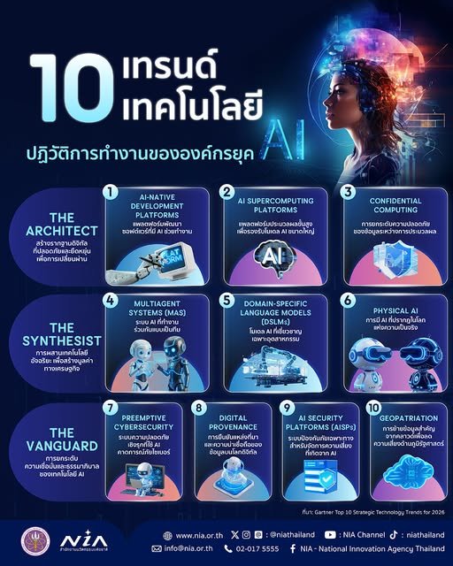 ปี 2026 คือจุดเปลี่ยนสำคัญ ที่องค์กรต้องเร่งออกแบบระบบใหม่ให้พร้อมสำหรับโลกที่ขับเคลื่อนด้วย AI อย่างเต็มรูปแบบผู้ประกอบการและองค์กรที่ต้องการอัปเดตเทรนด์เทคโนโลยีที่น่าสนใจ ติดตามได้ที่เพจ NIA เพื่อไม่พลาดองค์ความรู้ที่นำไปต่อยอดสู่การทำธุรกิจและการบริหารองค์กรด้วยนวัตกรรมในอนาคต