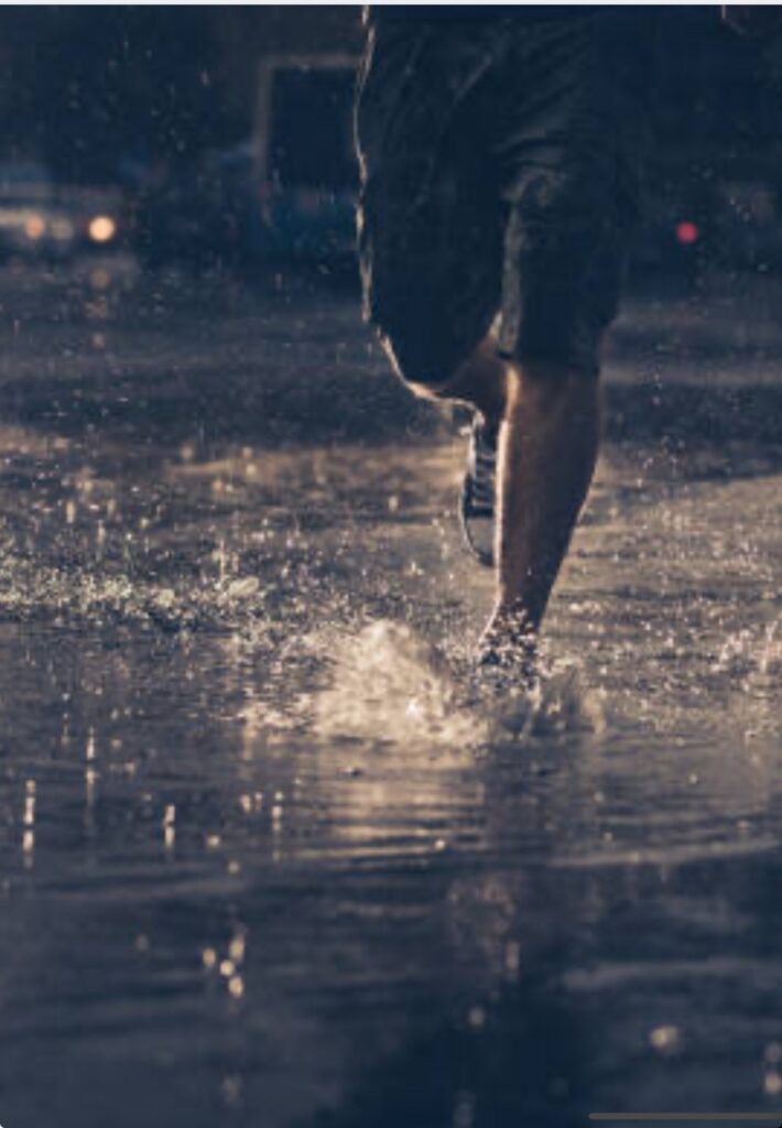 ฝนเริ่มซาลง แต่ลมยังพัดแรง เศษไม้ เศษขยะ และเศษกระดาษลอยอยู่เต็มซอย เขาก้าวต่อด้วยใจเต้นรัว รองเท้าเหมือนกำหนดเส้นทางให้เขาไปข้างหน้า ทุกก้าวที่ลงพื้น เสียงสะท้อนของฝีเท้าตัวเองดังประสานกับเสียงน้ำหยดจากท่อระบายน้ำ ทำให้รู้สึกเหมือน โลกกำลังบีบเขาเข้าไปในความมืด