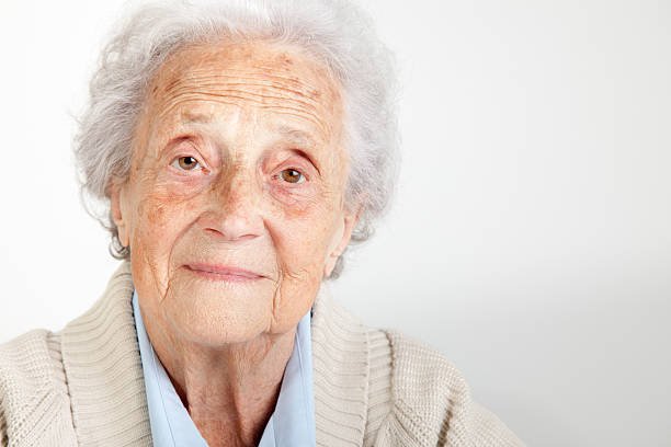 ผู้หญิงสูงอายุ ผมสีเทา ดวงตาใจดี