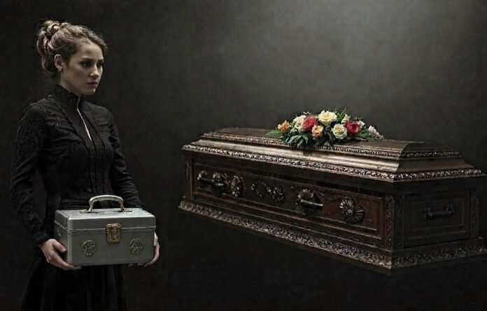 แล้วเธอก็เดินถือกล่องโลหะใบเล็กๆ ไปวางลงในโลง