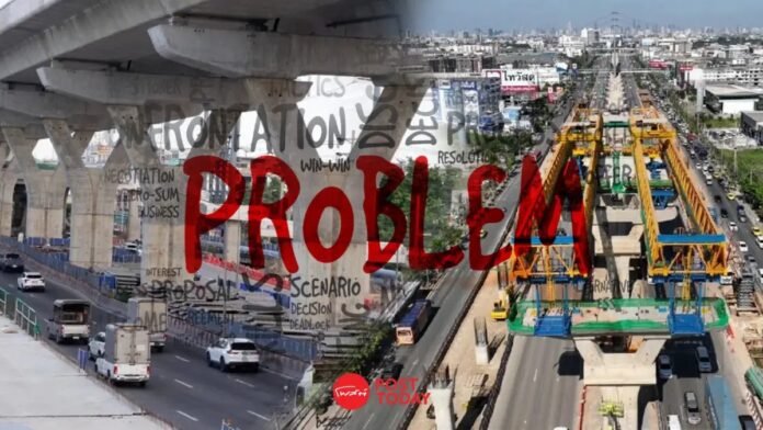 ในการก่อสร้างทางลอยยกระดับ แอ่งพรุน้ำซึมใต้ถนน