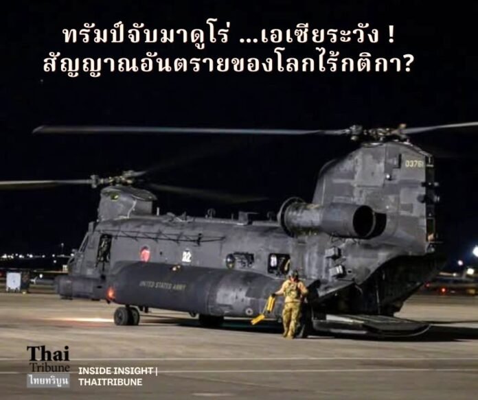 ปฏิบัติการสะท้านฟ้า ที่กองกำลังสหรัฐฯ ใช้เครื่องบินและหน่วยทหารพิเศษโรยตัวเข้ากรุงการากัส จับกุมประธานาธิบดีนิโคลัส มาดูโร พร้อมภรรยา ก่อนควบคุมตัวขึ้นเร่อรบไปนิวยอร์ก เพื่อดำเนินคดีภายใต้ข้อกล่าวหาเกี่ยวข้องกับยาเสพติด อาจไม่ใช่เพียงข่าวอาชญากรรมข้ามชาติ แต่คือ “สัญญาณเตือน” ว่ามหาอำนาจภายใต้โดนัลด์ ทรัมป์ กำลังเลือกใช้อำนาจเหนือกติกาโลกอย่างเปิดเผยยิ่งขึ้น