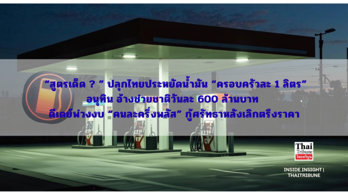 “สูตรเด็ด ? ” ปลุกไทยประหยัดน้ำมัน “ครอบครัวละ 1 ลิตร” อนุทิน อ้างช่วยชาติวันละ 600 ล้านบาท ดีเดย์พ่วงงบ “คนละครึ่งพลัส” กู้ศรัทธาหลังเลิกตรึงราคา