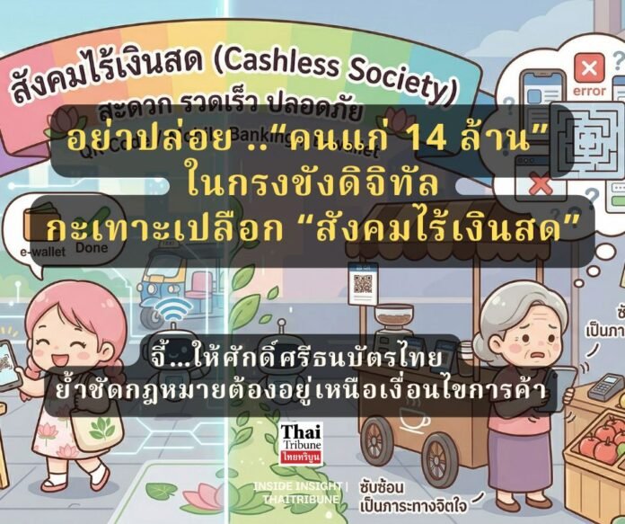 ท่ามกลางบรรยากาศรื่นเริงของเทศกาลสงกรานต์และวันครอบครัว ประเทศไทยกำลังอวดโฉมในฐานะดาวรุ่งแห่งโลกดิจิทัลด้วยระบบชำระเงินที่ก้าวล้ำทัดเทียมอารยประเทศ ทว่าในมิติของการพัฒนาที่พุ่งทะยาน กลับปรากฏ “รอยร้าว” ใหญ่ที่แแฝงมาในรูปของความสะดวกสบาย เมื่อประชากรอาวุโสกลุ่มใหญ่ของชาติกำลังถูกโดดเดี่ยวจากวงจรเศรษฐกิจเพียงเพราะก้าวตามไม่ทันแอปพลิเคชัน ถึงเวลาที่รัฐต้องฉุกคิดว่าความเจริญที่แท้จริงต้องไม่ทิ้งใครไว้ในซอกหลืบของเทคโนโลยี และต้องเคร่งครัดไม่ปล่อยให้อำนาจเงินตราตามกฎหมายถูกด้อยค่าด้วยเงื่อนไขทางการค้าตามอำเภอใจ