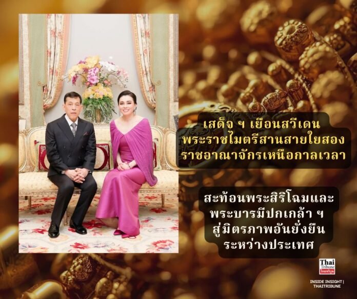 ภายใต้พระบารมีปกเกล้าปกกระหม่อมแห่งพระบาทสมเด็จพระเจ้าอยู่หัว และสมเด็จพระนางเจ้า ฯ พระบรมราชินี ในการเสด็จพระราชดำเนินเยือนราชอาณาจักรสวีเดนอย่างเป็นทางการ ระหว่างวันที่ 29 เมษายน ถึง 2 พฤษภาคม 2569 ตามคำกราบบังคมทูลเชิญของสมเด็จพระราชาธิบดีคาร์ลที่ 16 กุสตาฟแห่งสวีเดน ถือเป็นหมุดหมายทางประวัติศาสตร์ที่จารึกความสง่างามของสถาบันพระมหากษัตริย์ไทยในระดับสากล และเป็นสัญลักษณ์สูงสุดแห่งพระราชไมตรีอันพูนทวีระหว่างสองราชอาณาจักรที่ผูกพันกันด้วยวิถีแห่งจารีตและวัฒนธรรมมาช้านาน