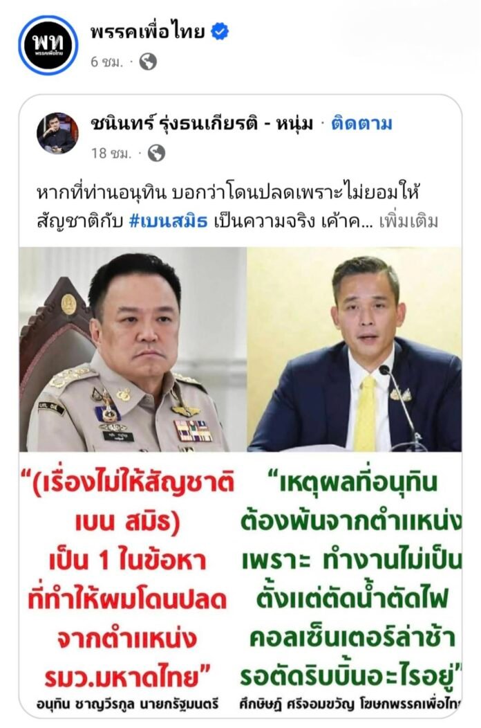 กระแสภาพร่วมเฟรมระหว่างนายกรัฐมนตรี อนุทิน ชาญวีรกูล และ Ben Smith ขยายวงต่อเนื่องเป็นวันที่สอง หลังจากถูกเผยแพร่ออนไลน์ในช่วงเวลาที่อ่อนไหวทางการเมือง จนทำให้เกิดคำถามว่าใครอยู่เบื้องหลังการปล่อยข้อมูลดังกล่าว เดิมทีข้อสงสัยมุ่งไปที่ “ฝ่ายตรงข้าม” แต่การประเมินของหลายสำนักข่าวในวันนี้กลับชี้ว่า กระแสข้อมูลอาจมีต้นทางมาจากเครือข่ายที่อยู่ใกล้ศูนย์อำนาจของรัฐบาลเองมากกว่าที่ประเมินไว้ในช่วงแรก
