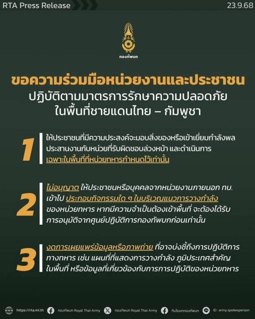 3) กองทัพไทยเพิ่มการรักษาความปลอดภัยชุมชนชายแดน