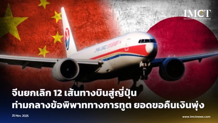SCMP รายงานว่า ท่ามกลางข้อพิพาททางการเมืองระหว่าง ปักกิ่ง (Beijing) และ โตเกียว (Tokyo) ที่ยังคงทวีความตึงเครียดอย่างต่อเนื่อง รายงานจากสื่อภายในประเทศจีนระบุว่า สายการบินภายในประเทศบางส่วนได้ ระงับการให้บริการเที่ยวบิน ใน 12 เส้นทางที่มุ่งหน้าสู่ญี่ปุ่น ซึ่งรวมถึงเส้นทางไปยังแหล่งท่องเที่ยวสำคัญอย่าง เกียวโต (Kyoto) และ โอซากา (Osaka) โดยนักวิเคราะห์คาดการณ์ว่า จำนวนการยกเลิกเที่ยวบินจะเพิ่มสูงขึ้นภายในสัปดาห์นี้